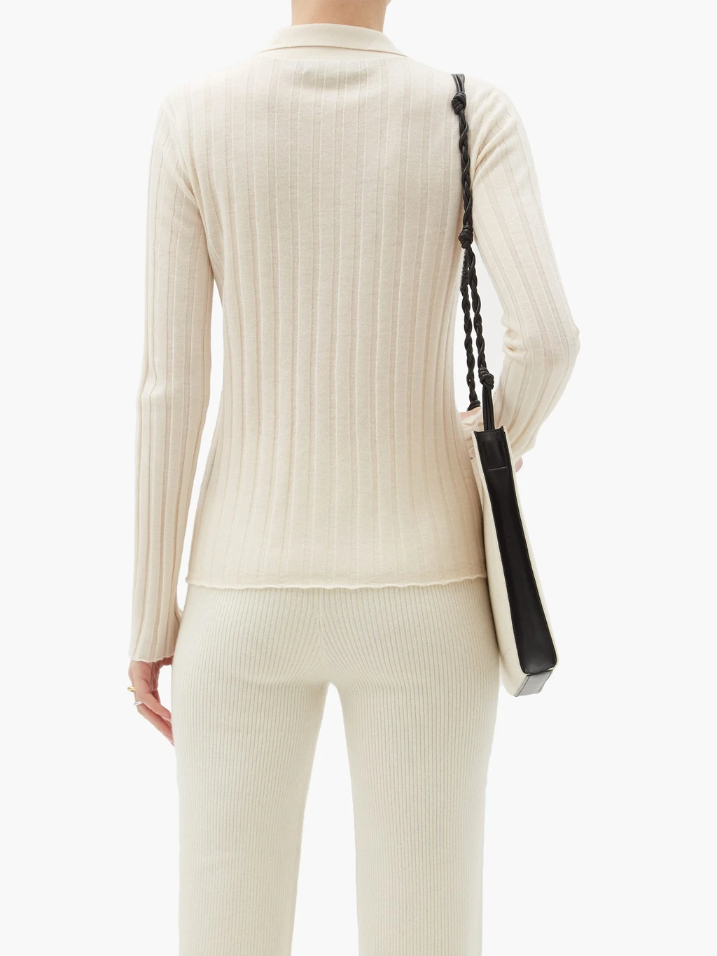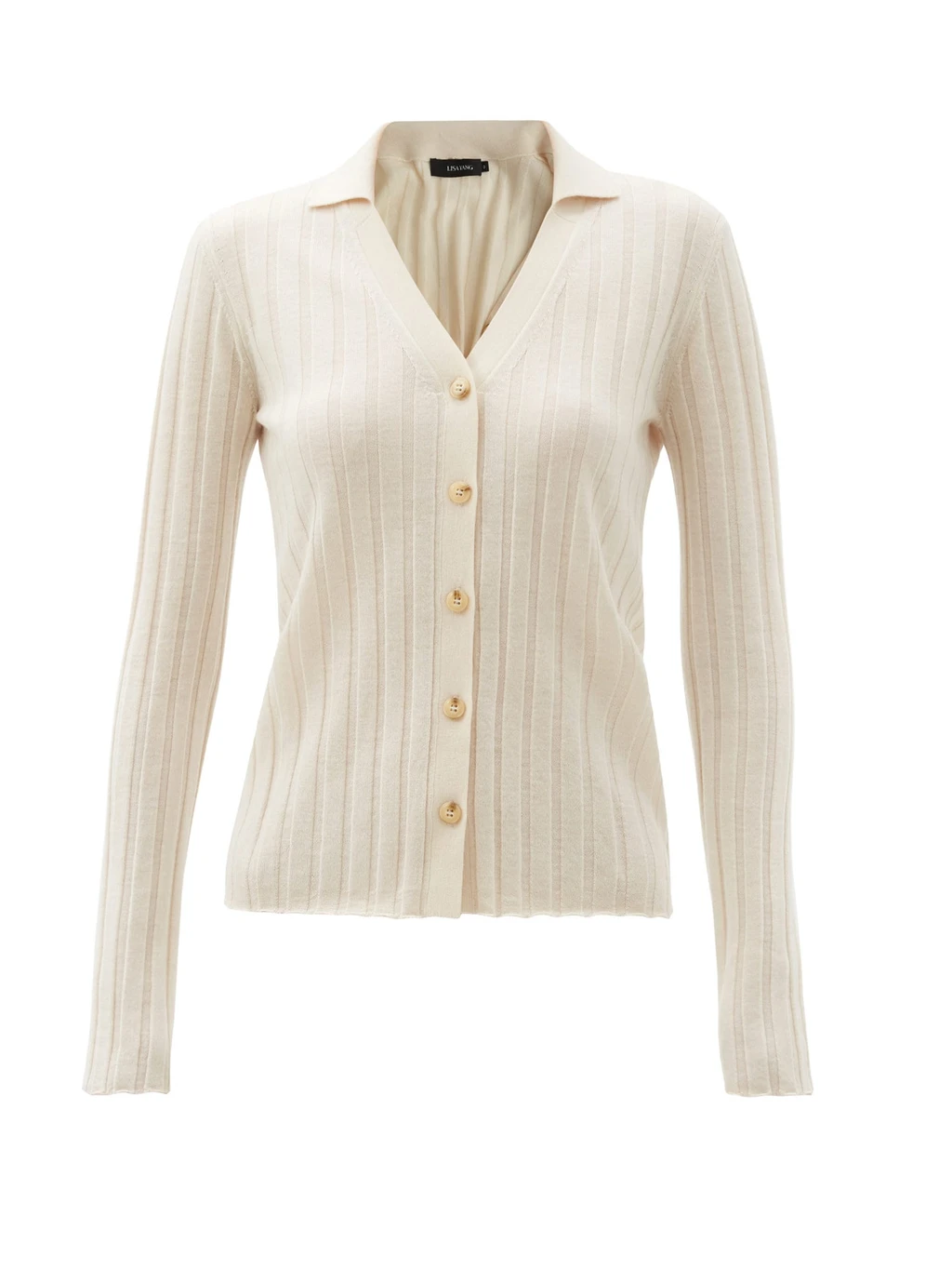 A cropped take on a classic. The V-neck cardigan with a button front and ribbed trim. Cozy yet lightweight in a textural boucle knit made with organic cotton from Peru.